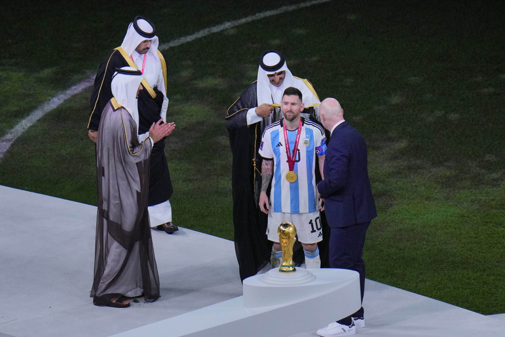 Neposredno pre podizanja "zlatne boginje" katarski šeici dali su Mesiju ogrtač bišt i on je poklon prihvatio, te je tako obučen nastavio sa radovanjem.