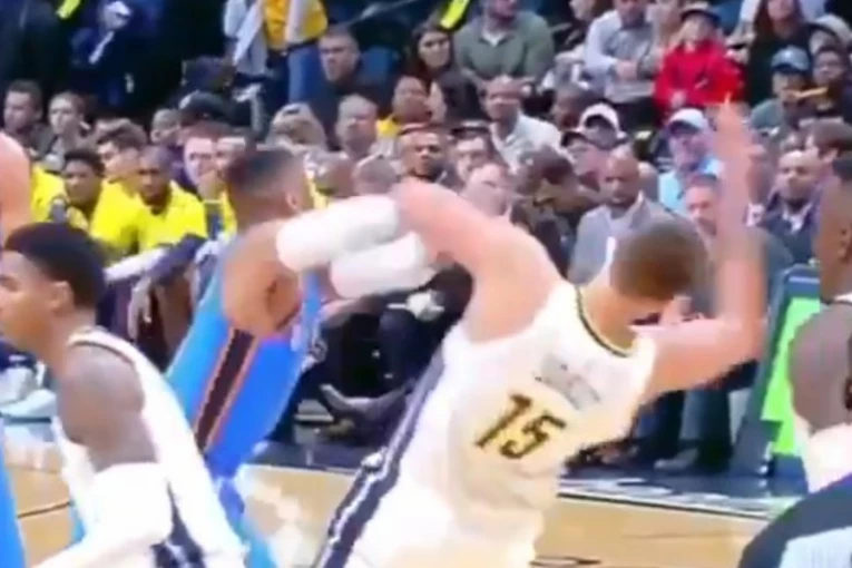 Srpski centar odgurnuo je prošlogodišnjeg MVP pokušavajući da prođe kroz blok, ovaj se iznervirao, snažno udario Nikolu i zaradio nesportsku ličnu grešku.