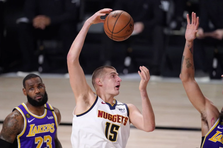 Foto: Tanjug/APCentar Denvera Nikola Jokić rekao je posle eliminacije od Lejkersa (1:4), da je ključ poraza u petom susretu bio fenomenalni Lebron Džejms, koji ih je "naterao da stalno misle o njemu".