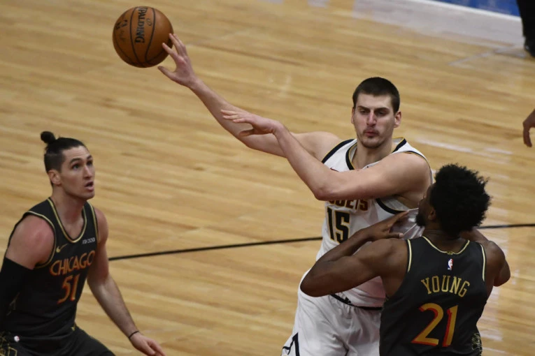 Foto: Tanjug/APSrpski centar u 19. trijumfu Nagetsa u sezoni bio je na korak od 50. tripl-dabl učinka u karijeri, pošto je za 38 minuta igre ubacio 39 poena (17/28 šut iz igre), uz 14 skokova i devet asistencija.