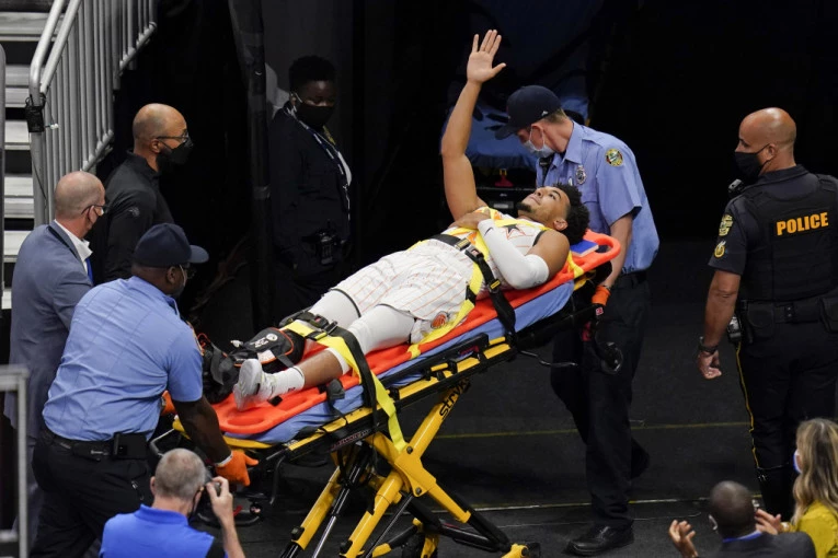 Foto: Tanjug/APBivši košarkaš univerziteta Prinston je po pokušaju blokade Edmonda Samnera loše doskočio i tom prilikom polomio nogu.