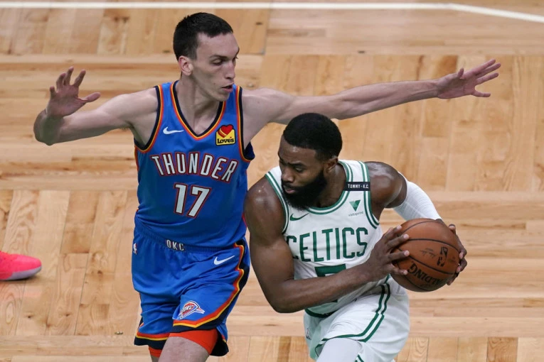 Foto: Tanjug/APAleksej Pokuševski je u iznenađujućoj pobedi Oklahome na gostovanju Bostonu (119:115) na terenu proveo 27 minuta.