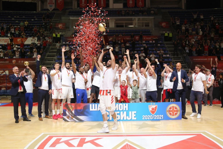 Foto: StarsportCrveno-beli su majstorici pobedili Megu 77:65 i osvojili 21. titulu šampiona Srbije, a u hali "Aleksandar Nikolić" bili su prisutni i navijači.