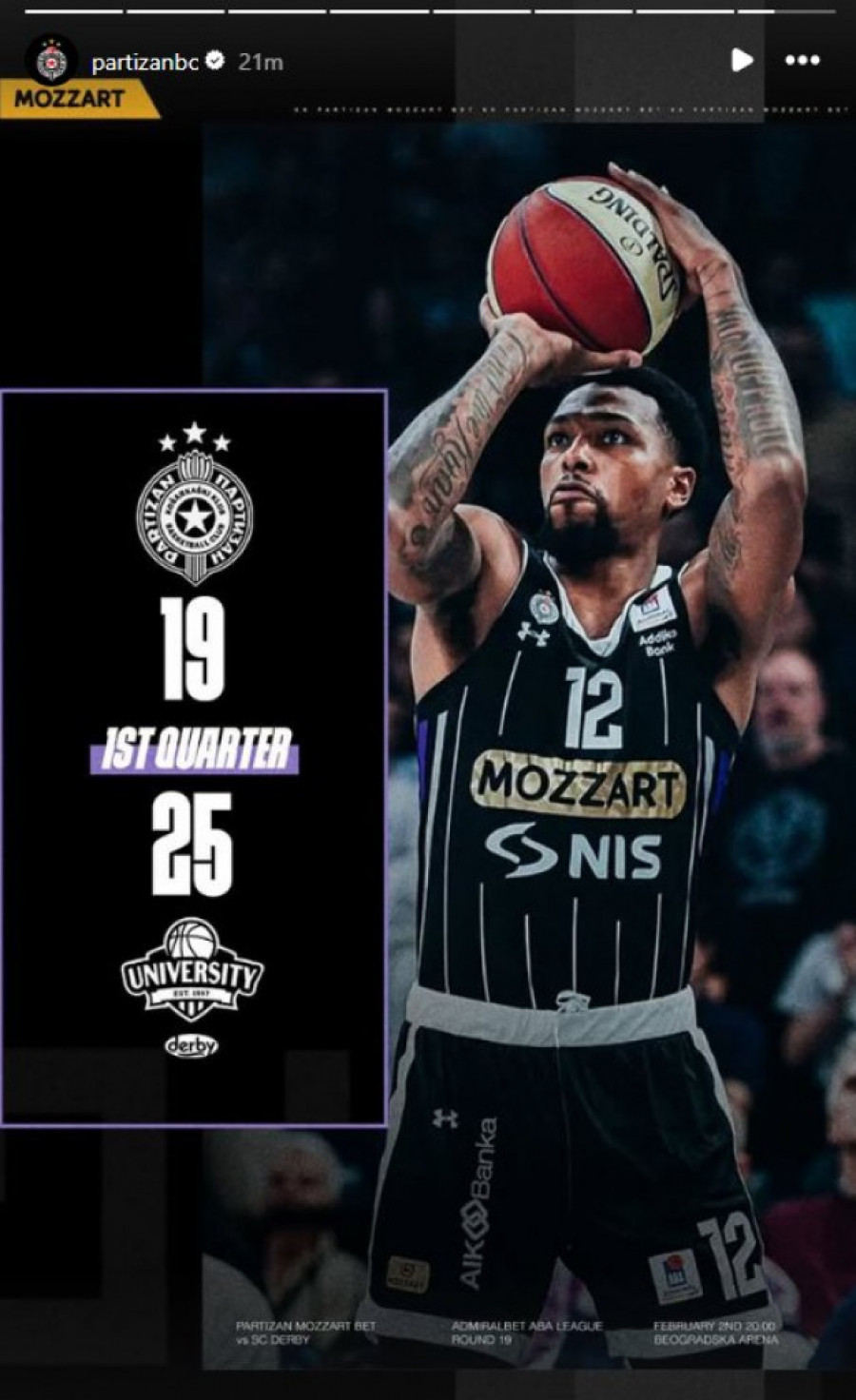 Ovim trijumfom Partzian je ostvario 17. prvenstvenu pobedu čime se izjednačio na liderskoj poziciji AdmiralBet ABa lige zajedno sa podgoričkom Budućnošću, a navedene dve ekipe imaju pobedu više u odnosu na trećeplasiranu Crvenu zvezdu Meridianbet.