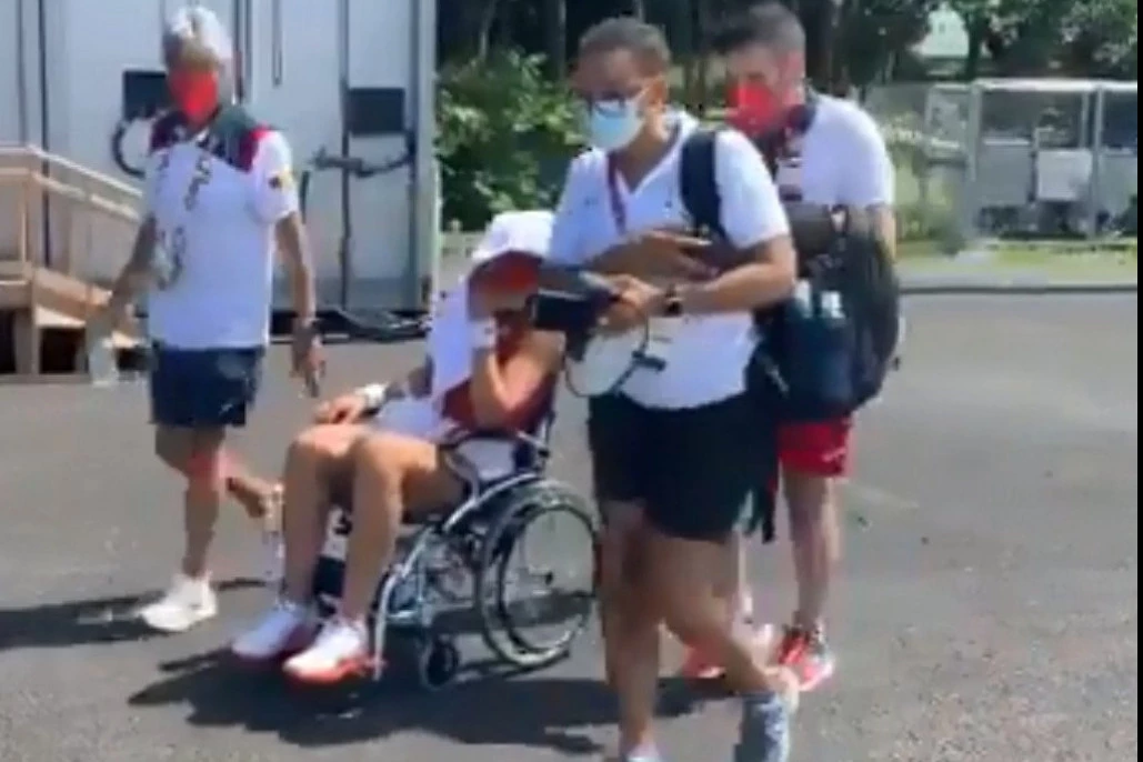 Na kraju je čak teren napustila dok je sedela u kolicima, uz pomoć doktora i sa peškirom preko glave.