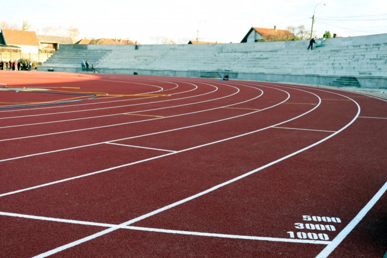Foto: TanjugRadove je izvela firma "Bauvzen" iz Lazarevca, a stadion ima osam traka na poliuretanskoj stazi, podlozi za sve vremenske uslove, od specijalnog crvenog poliuretana na asfaltu otpornom na habanje, temperaturne oscilacije, sprinterice i UV zračenja, rekli su izvođači radova.