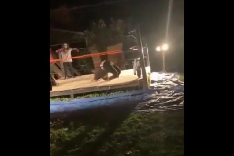 Momak je, naizgled, učestvovao u "rvanju u dvorištu", kada se popeo na ring kako bi pozdravio publiku.
