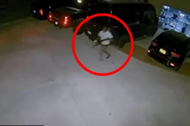 Snimak je sa sigurnosnih kamera njegovog doma u Albakerkiju, a na njemu se vidi momak koji najpre prilazi kući, pa njegovim kolima, da bi potom zalajao pas.