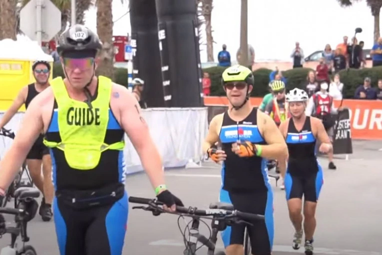 Foto: youtube.com/printscreenTriatlonac sa Floride, momak od 21 godne, postao je prva osoba sa Daunovim sindromom koja je završila Ironman događaj - plivajući 4 kilometra, biciklirajući 180 kilometara i istrčavši maraton od 42 kilometra.