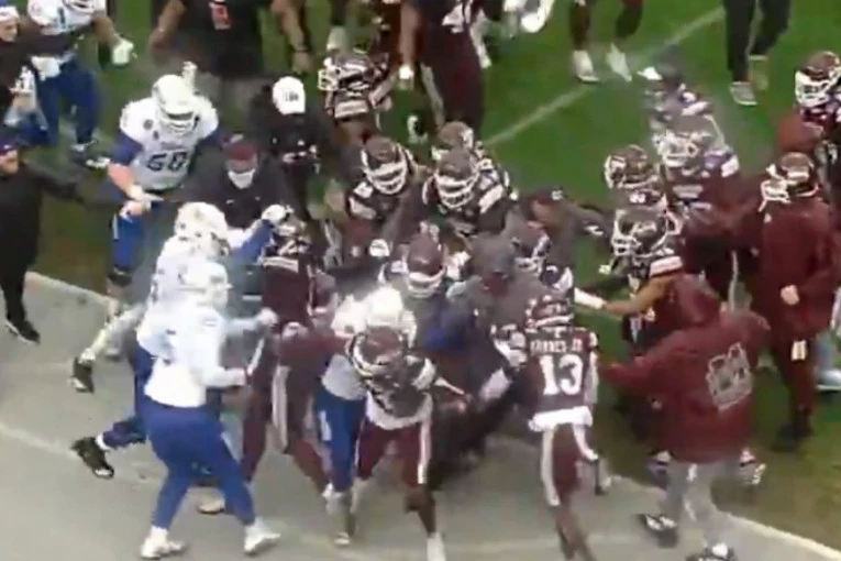Foto: twitter.com/printscreenKraj 2020. godine u američkom fudbalu obeležila je masovna tuča igrača na završnom takmičenju ekipa Misisipi stejta i Tulse u konkurenciji koledža - Armed Forces Bowl.