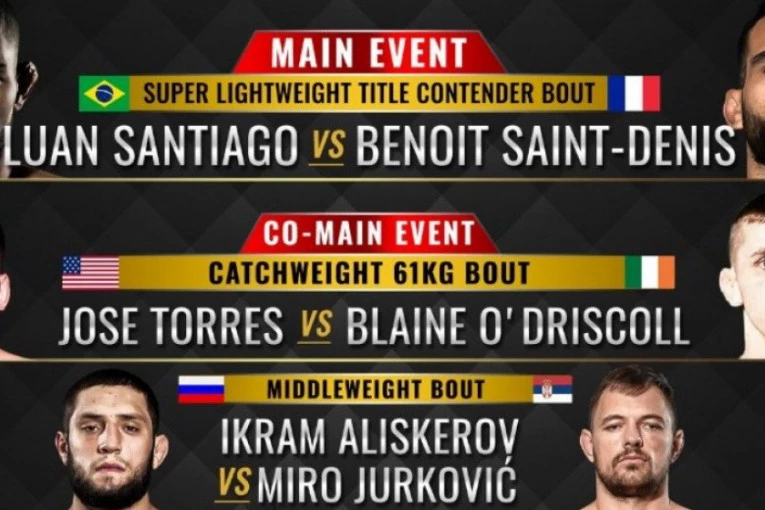 U borbi večeri sastaće se Brazilac Luan Santjago, bivši svetski prvak u lakoj kategoriji, i neporaženi borac iz Francuske Beno Sen Deni, poznatijim kao "Bogom rata".