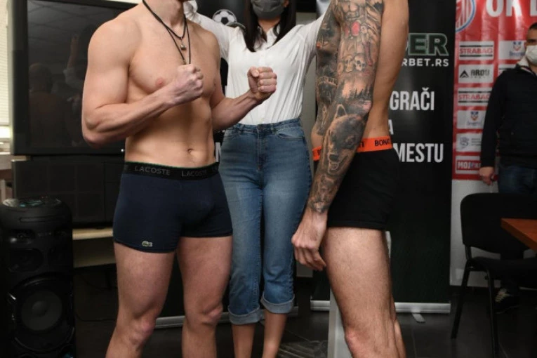 Foto: Nemanja DedovićMerenje ratnika plemenite veštine koji će se u petak 23. aprila 2021. boriti za šampionski pojas u hotelu Kraun plaza u Beogradu održano je u prostorijama sportskog društva "Crvena Zvezda". Vatrogasac, nepobedivi srpski bokser u ovoj kategoriji Nikolić nalazi se pred najvećim izazovom u dosadašnoj karijeri, kao i njegov protivnik iz Kalinjingrada - Gorohov.