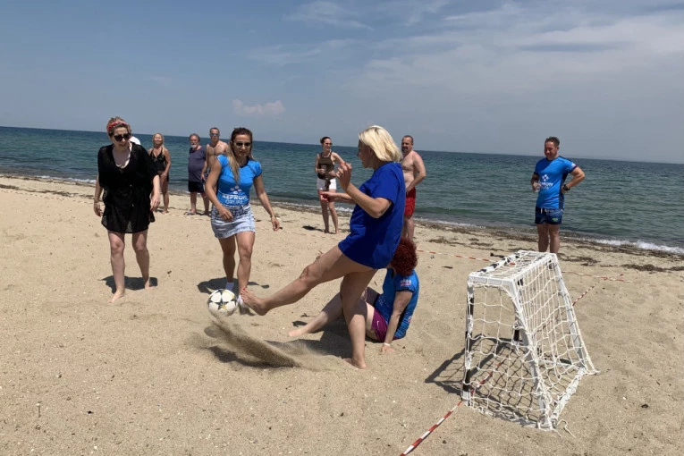 Foto: SFKSTačno 100 učesnika iz više uglednih srpskih kompanija takmičilo se u 10 sportova: fudbalu na pesku, stonom tenisu, pikadu, plivanju, odbojci na pesku, šahu, nadvlačenju konopca, bacanju kamena s ramena, streličarstvu i košarci, a sveukupni pobednik je Keprom iz Beograda.