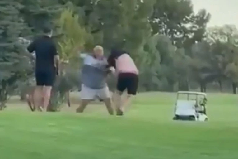 Dva korpulentna golfera su se ozbiljno makljali, udarci su sevali nekontrolisano po glavi i telu, istini za volju tolikih gabarita da nije teško promašiti.