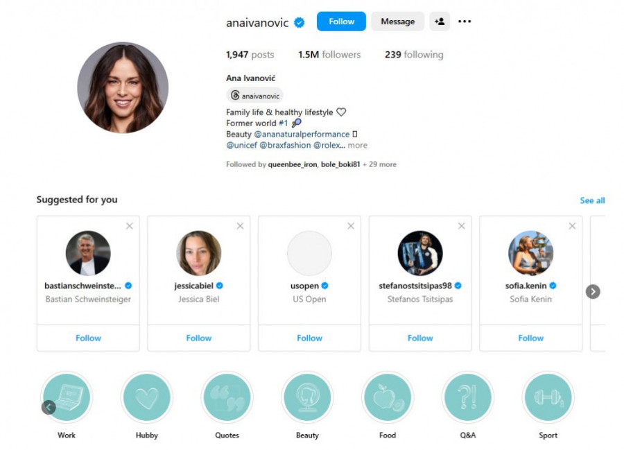Foto: Instagram.com/printscreen/anaivanovic