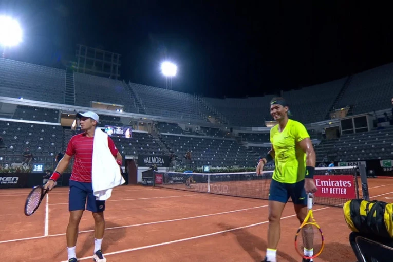 Foto: Twitter/Printscreen/DelŠpanski teniser Rafael Nadal rutinski je nadigrao Dušana Lajovića u osmini finala Mastersa u Rimu, a tokom meča viđena je interesantna "rasprava" dvojice igrača oko peškira.