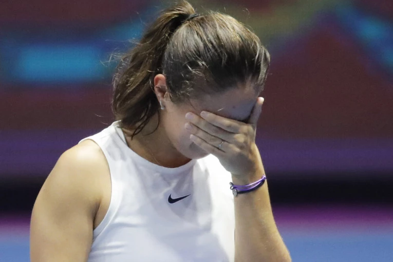 Foto: Tanjug/APKasatkina je tokom meča sa Ons Žaber iz Tunisa bila veoma frustrirana zbog greške koju je napravila, pa je bes iskalila na sebi. Ogrebala je sebe po vratu tom prilikom.