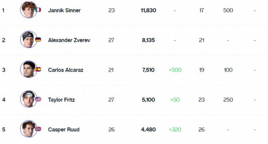 - Poeni koje će Janik Siner izgubiti: