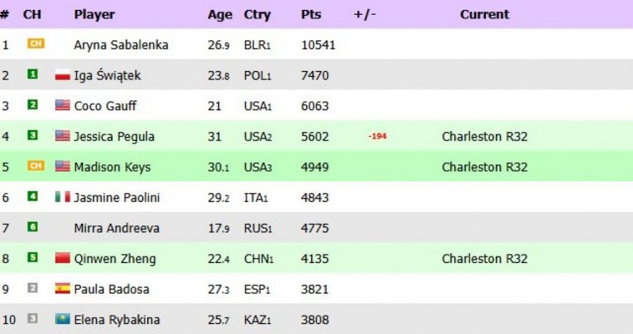 Na vrhu WTA liste ostaje beloruska teniserka Arina Sabalenka, koja sa 10.541 bodom čvrsto drži lidersku poziciju. U njenom neposrednom okruženju nalaze se Poljakinja Iga Švjontek i Amerikanke Koko Gof, Džesika Pegula i Medison Kiz. Zanimljivo je da je španska teniserka Paula Badosa ponovo ušla u prvih deset, dok je Amerikanka Ema Navaro ispala iz ovog prestižnog društva. Pored njih, među prvih deset nalaze se i Italijanka Džasmin Paolini, Ruskinja Mira Andrejeva, Kineskinja Ćinven Dženg i Kazahstanka Elena Ribakina. Ovi podaci osvetljavaju trenutnu dominaciju teniserki iz različitih zemalja, čime se dodatno naglašava globalni karakter ženskog tenisa.