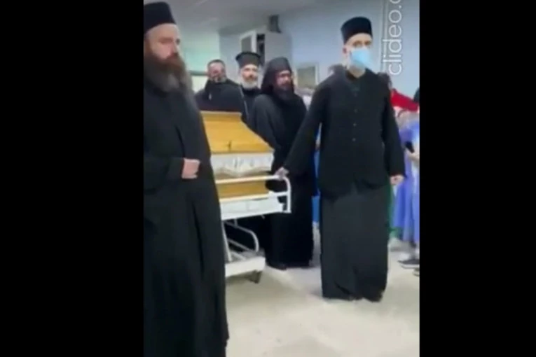 (VIDEO) Pogledajte potresan trenutak kada sveštenici iznose iz bolnice upokojenog mitropolita Amfilohija u kovčegu!