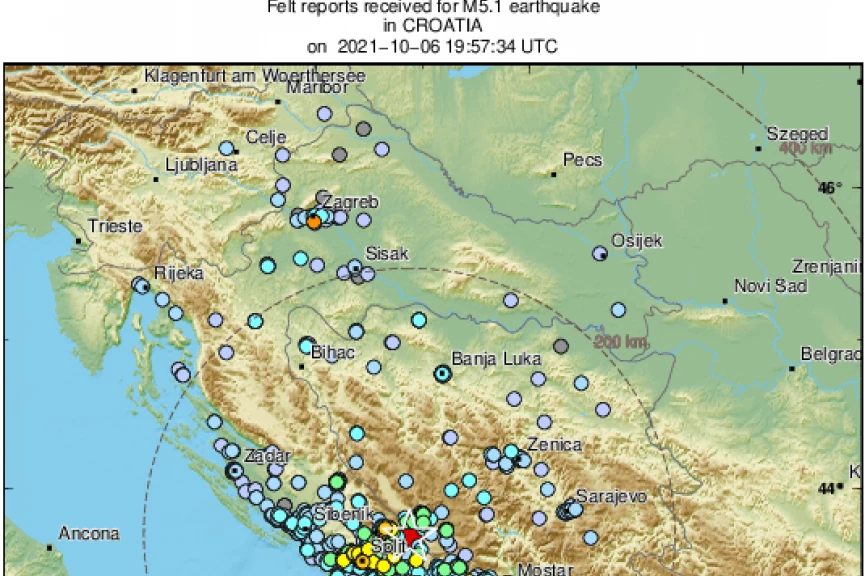 Epicentar je bio oko 40 kilometara severoistočno od Splita i 19 kilometara jugozapadno od Livna.