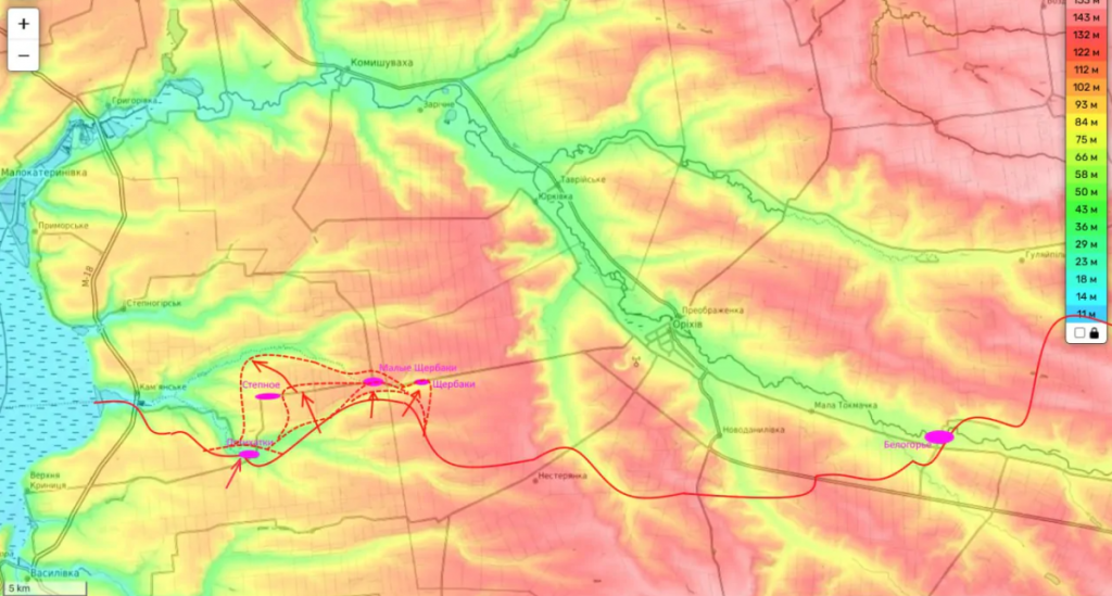 Prema izveštajima vojnih analitičara, ruska vojska je nakon prodora u Pjatihatkama intenzivirala operacije na orehovskom pravcu, vršeći snažan pritisak na ukrajinske snage u oblasti Ščerbaki i Mali Ščerbaki.