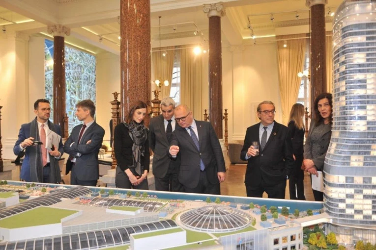 Takođe, rekao mu je da je već u postupku izgradnje više od milion kvadrata od 1,8 miliona koliko će ukupno biti izgrađeno, da se trenutno gradi centralna kula...