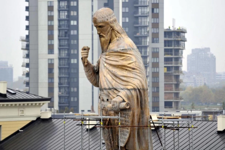Naveo je da je statua Stefana Nemanje postavljena i dodao da se spomenik od utorka više neće moći videti jer će potpuno biti zatvoren skelom unutar koje će se izvoditi radovi.
