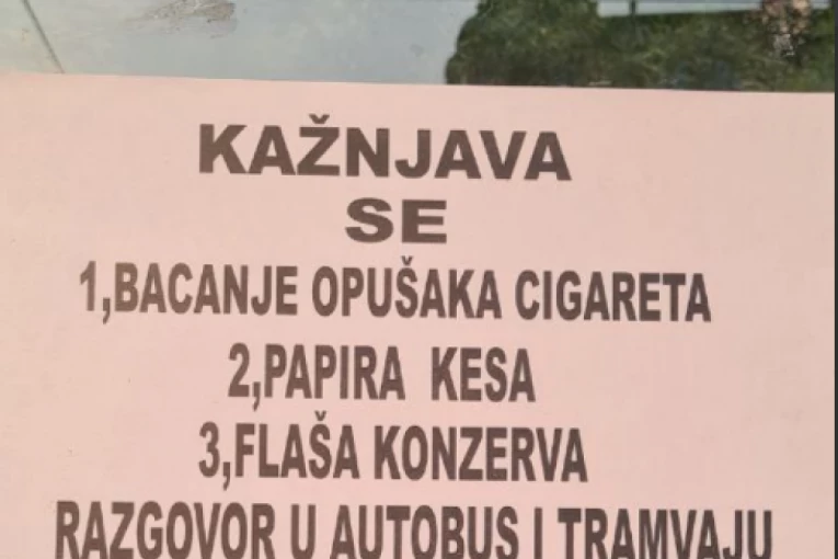 Na veliki broj stajališta gradskog prevoza u Beogradu prethodnih dana nalepljena je, malo je reći čudna, upozoravajuća poruka u kojoj se građanima preti kaznama od čak 10.000 dinara ukoliko budu bacili opuške cigareta, papirne kese i ambalažu, ali je u njoj naglešeno da ista sankcija čeka i sve ljude koji budu razgovarali u autobusima i tramvajima!?