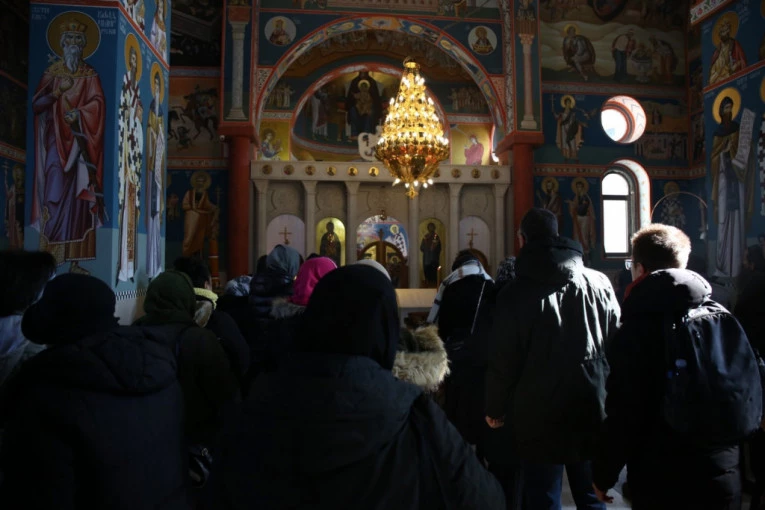 Nakon liturgije koja je počela u 12 časova u ovom hramu, čitao se Akatist, a sveštenstvo je govorilo o istorijatu prenosa moštiju.