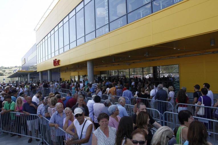 Pola sata pre otvaranja, stotine kupaca nestrpljivo je čekalo u redovima. Vrata su otvorena tačno u deset časova, a zaposleni su ih dočekali gromoglasnim aplauzom.