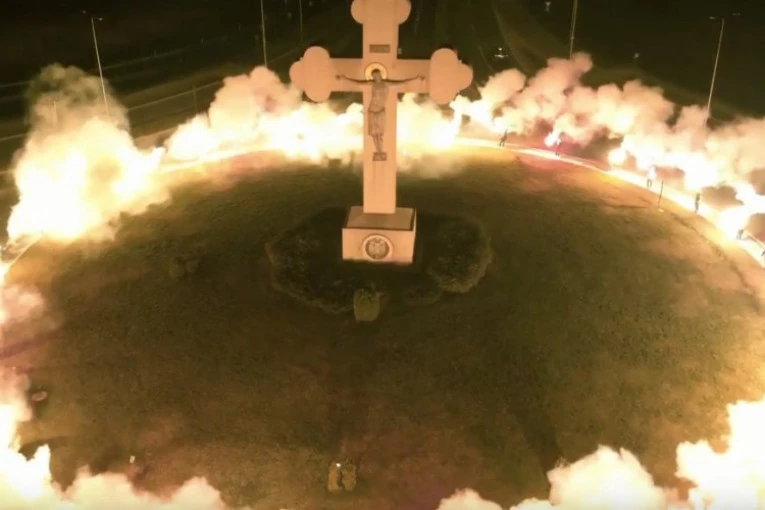 Foto: youtube.com/printscreenUpravo tako jedan snimak dolazi iz Kragujevca, na kom se vidi kako desetine momaka stoji na glavnom kružnom toku ovog grada sa upaljenim bakljama u rukama. Prizor je neverovatan.