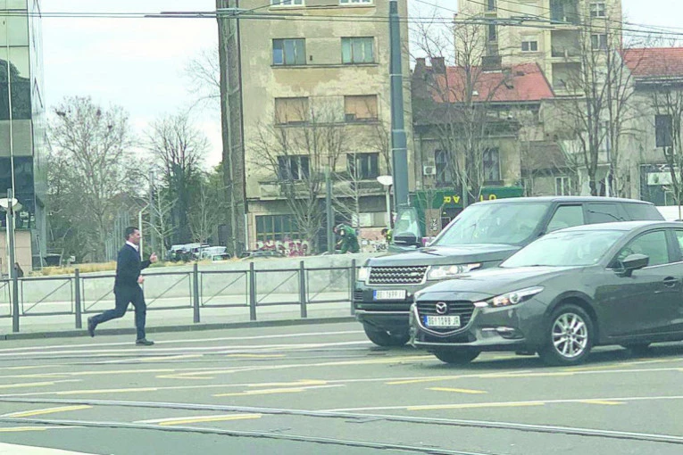 Foto: Privatna arhivaKako se vidi na fotografijama koje objavljujemo, bahati Krstić zaustavio je saobraćaj na najprometnijem kružnom toku u Beogradu samo kako bi se pozdravio sa prijateljem.
