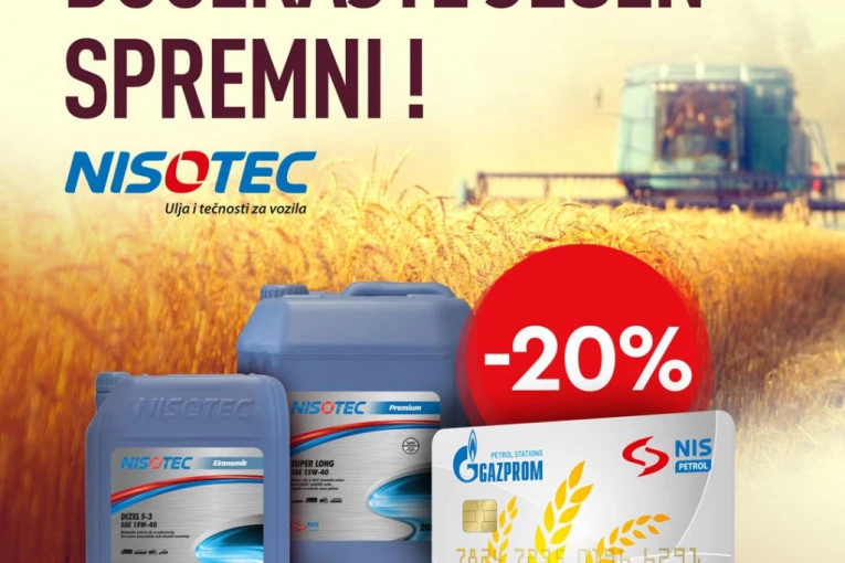 Foto: NISKorisnicima NIS Agro kartice odobren je poseban popust od 20 odsto na deo proizvoda za poljoprivrednu mehanizaciju u pakovanjima od 10 i 20 litara koji će trajati do kraja oktobra. Pored toga, u istom vremenskom periodu, za korisnike kartice lojalnosti „Sa nama na putu“ takođe je pripremljen popust od 20 odsto na deo asortimana motornih ulja od 1 litar.