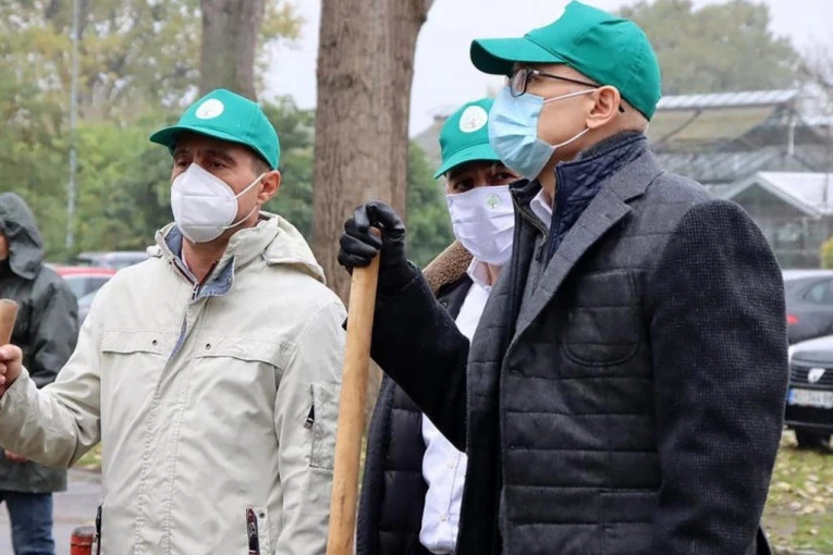 Gradonačelnik Miloš Vučević i članica Gradskog veća za imovinu i imovinsko-pravne poslove, zaštitu životne sredine, održivi razvoj i energetsku efikasnost Mira Radenović prisustvovali su sadnji u okviru Univerzitetskog parka kojom je simbolično počela akcija "Oživimo parkove".