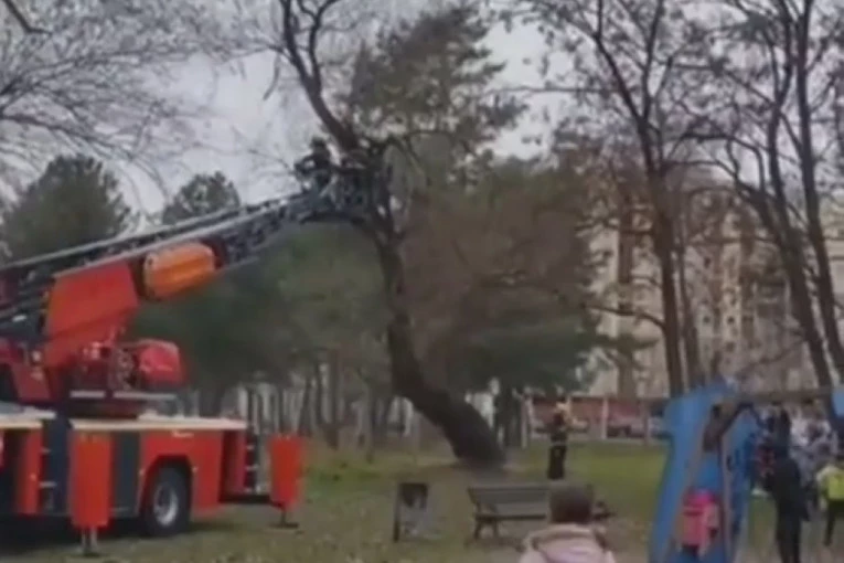 Foto: Instagram.com/printscreenVatrogasci u Novom Sadu spasili su dečaka koji se popeo na drvo u naselju Liman 4, u ulici Banović Strahinje.
