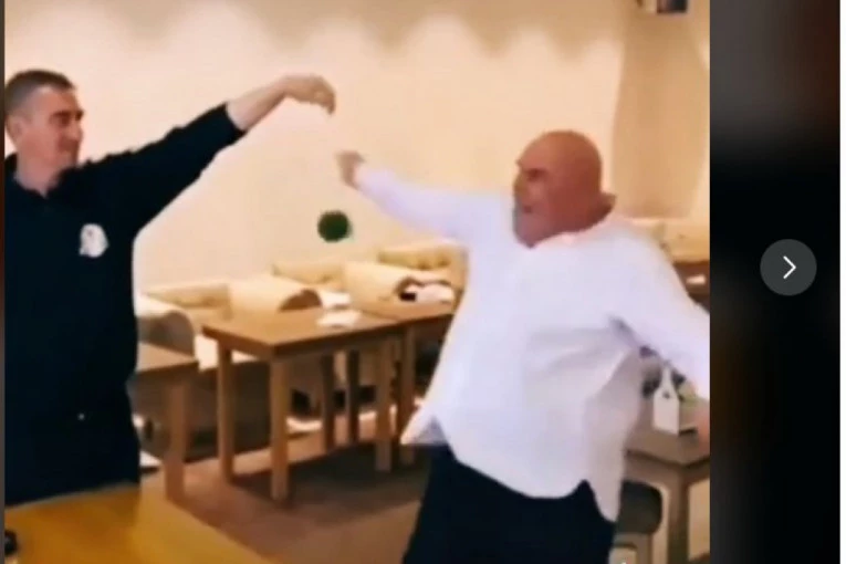 Na snimku vidimo Palmu i još jednog čoveka, koji u rukama drži Draganovog "protivnika". U pitanju je plastična flaša, koju je Palma u dva navrta, sa dva različita udarca "savladao".