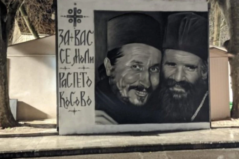 (FOTO, VIDEO) "Za vas se moli raspeto Kosovo!" Pogledajte veličanstveni MURAL vladici Atanasiju i mitropolitu Amfilohiju
