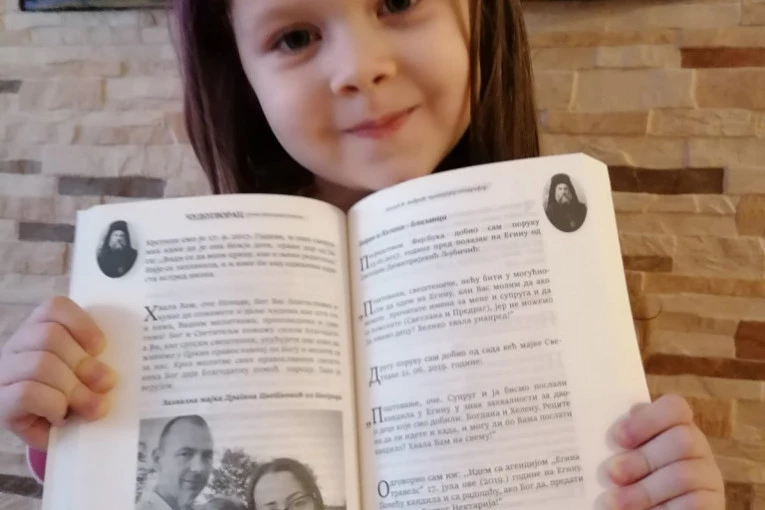 Devojčica Simona je rođena u porodici Cvetković po molivi Svetog Nektarija, a sada je porasla i čita knjigu sa svedočanstvom svojih roditelja i voli ovog čudotvorca.