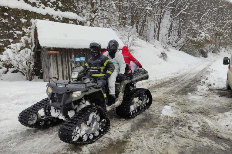 Foto: Promo fotoU pitanju je bračni par, a kako se do njih zbog velikog snega nije moglo stići, angažovani su pripadnci službe spasavanje.