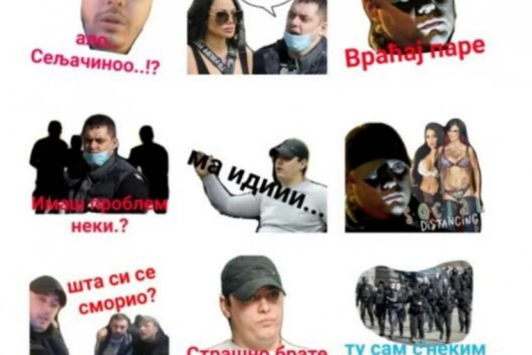 Na svim slikama u prodavnici nalepnica, koje se šalju uz poruke, nalazi se Belivuk, a uz svaku fotografiju je i poruka. Većina Belivukovih fotografija na tim stikerima, kojih ima 19, nastala je tokom njegovog hapšenja.