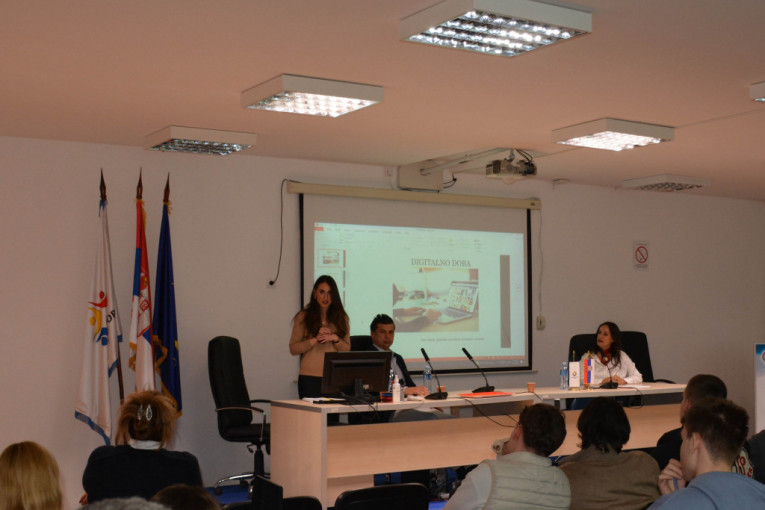 Prezentacija projekta “Prevencija, edukacija i socijalizacija” koji će se baviti temom prevencije bolesti zavisnosti od interneta kod učenika viših razreda osnovnih škola i srednih škola, održana je danas u amfiteatru sportske gimnazije “Sportium” u prisustvu velikog broja zainteresovanih učenika, njihovih roditelja, kao i nastavnog osoblja škole. Foto: Agos