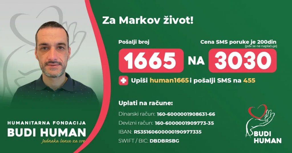 Humanitarna fondacija BUDI HUMAN - Aleksandar Šapić prikuplja novčana sredstva za Marka Jankova (1989).