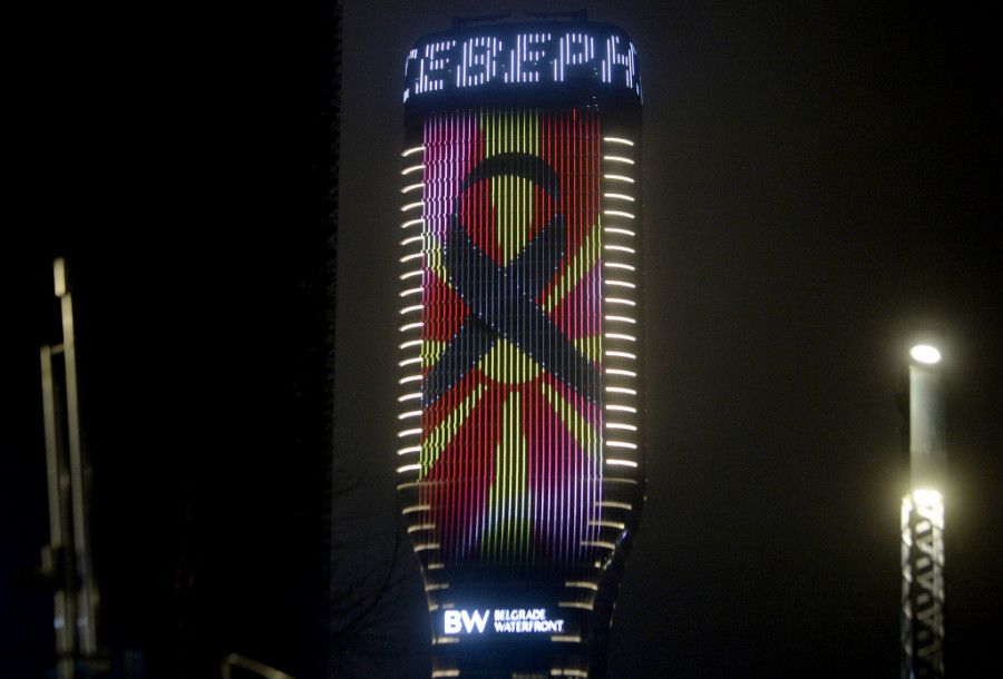 Na Kuli Beograd večeras je, u znak solidarnosti povodom tragedije u Severnoj Makedoniji, gde je u požaru u diskoteci poginulo 59 ljudi, prikazan video podrške.