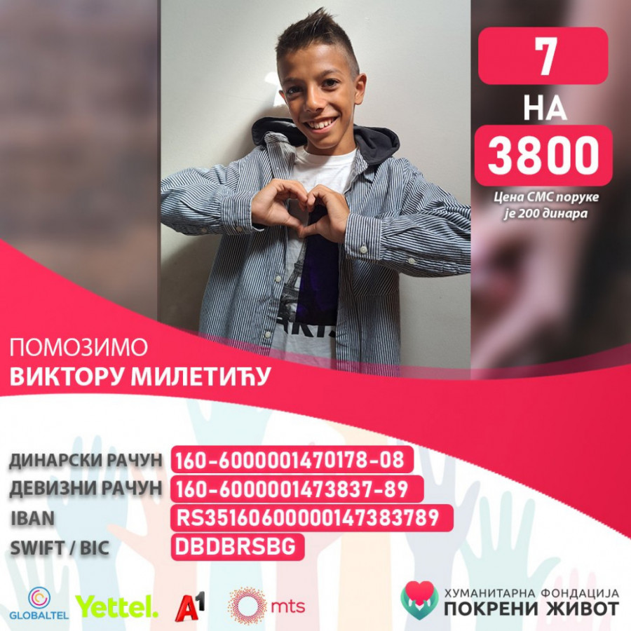 Ukoliko i vi želite da pomognete Viktoru, pošaljite 7 na 3800.