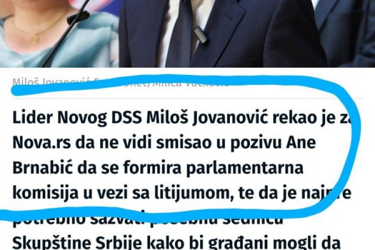 - Miloš Jovanović, lider Novog DSS-a rekao je za Nova.rs da ne vidi smisao u pozivu Ane Brnabić da se formira parlamentarna komisija u vezi sa litijumom... - navodi dati opozicioni medij.