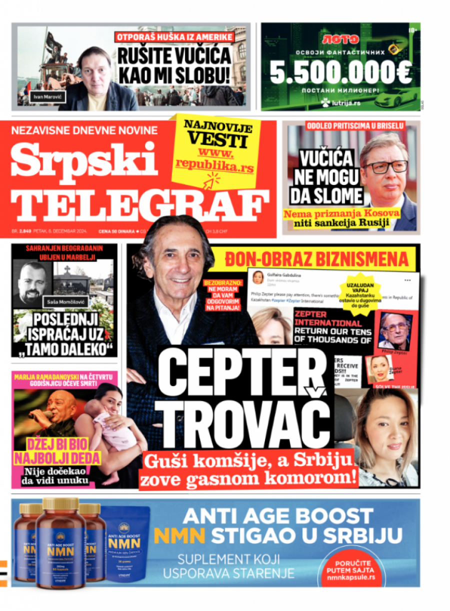 Srpski telegraf u izdanju za petak 6. decembar donosi pregršt važnih i interesantnih priča!
