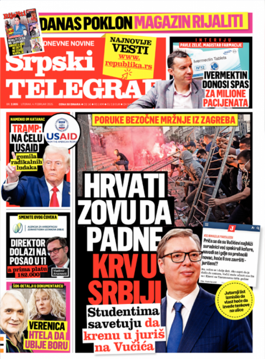 Naslovna strana Srpskog telegrafa za 04. februar 2025.
