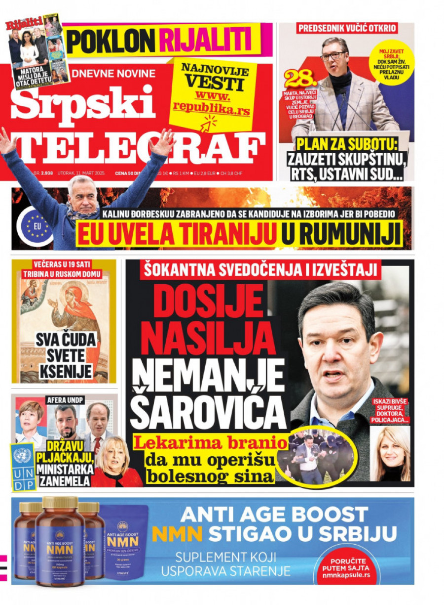 Srpski telegraf u izdanju za utorak 11. mart 2025. donosi pregršt novih i zanimljivih priča!
