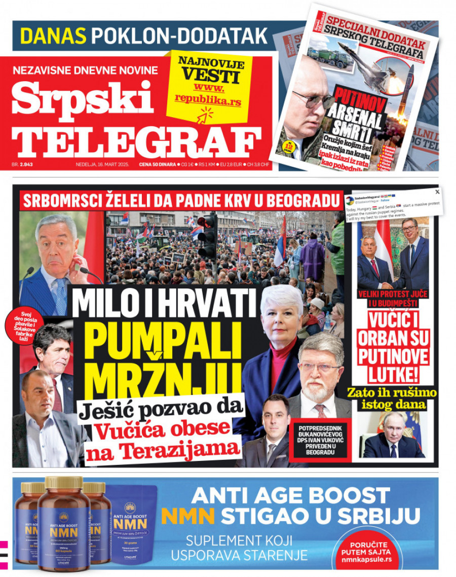 Srpski telegraf u izdanju za subotu 16. mart 2025. donosi pregršt novih i zanimljivih priča!